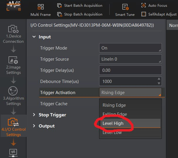 Чтобы включить режим, в поле Trigger Activation нужно выбрать Level High.